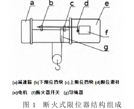 防爆鋼絲繩電動葫蘆是易燃易爆工廠中常用的起重設(shè)備,它的應(yīng)用可以避免工廠內(nèi)在從事起重吊裝作業(yè)過程中因摩擦而產(chǎn)生火花,再進(jìn)一步避免火災(zāi)爆炸事故的發(fā)生。在鋼絲繩電動葫蘆的零部件中,斷火式限位器又處于一個非常關(guān)鍵的位置。